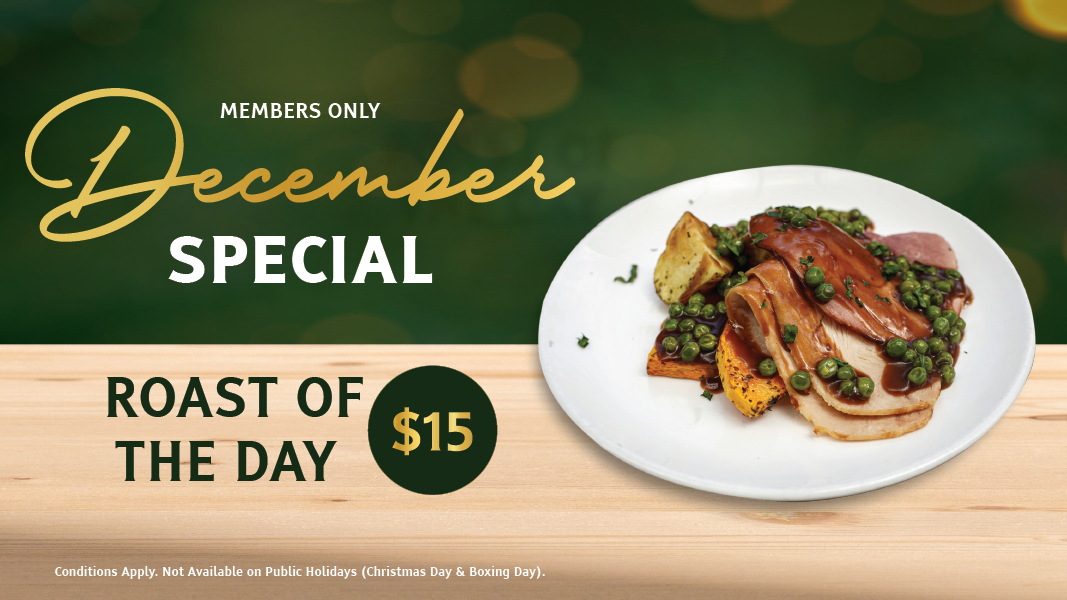 Enjoy a hearty Christmas Roast of the Day this December, with a new festive flavour served daily. Each day brings a fresh Christmas favourite, all for just $15.
