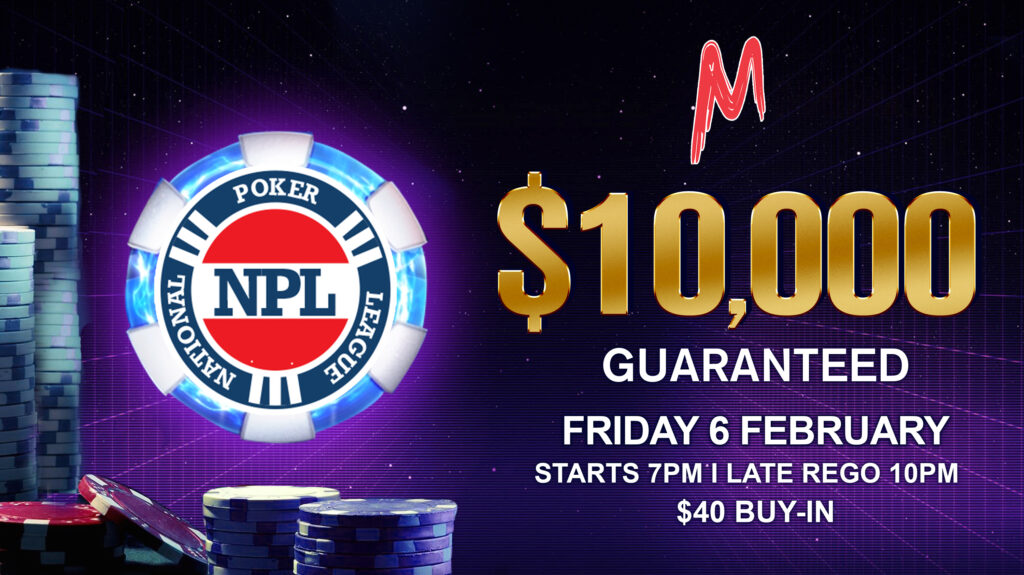 This event is run by NPL Poker. All players must be a current financial member of St. George Masonic Club to participate. To learn more about membership, ask a member of our staff and join at Reception. Day and time may be subject to change – stay tuned via our What’s On page.